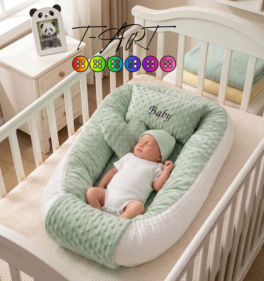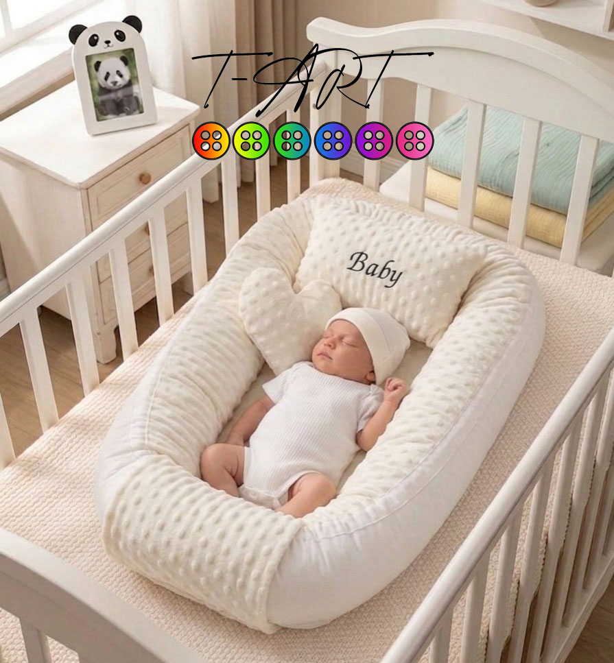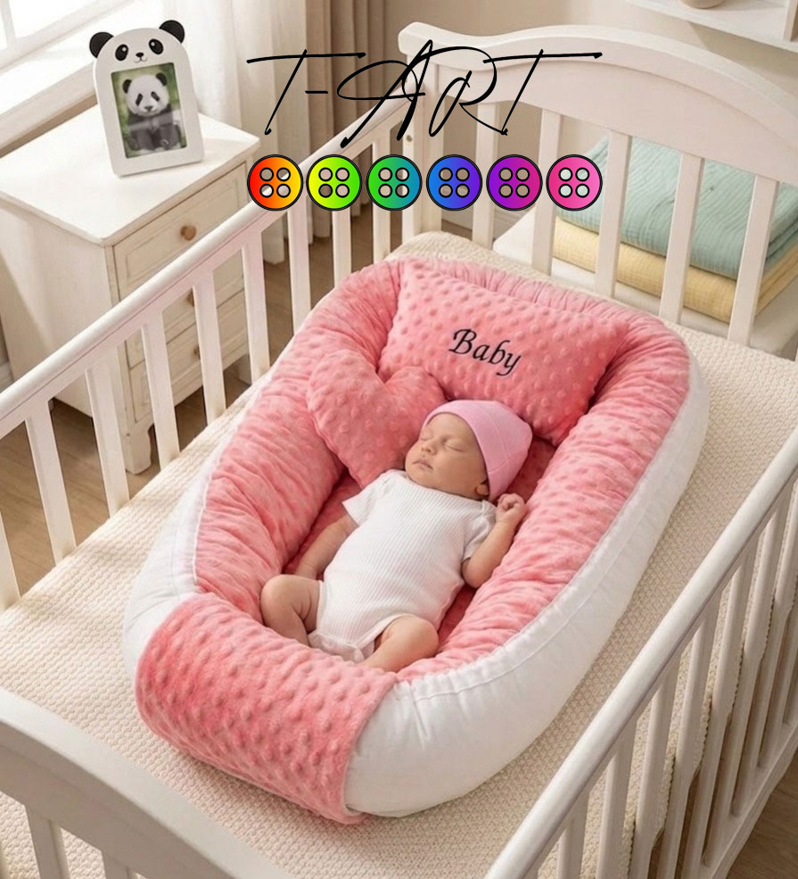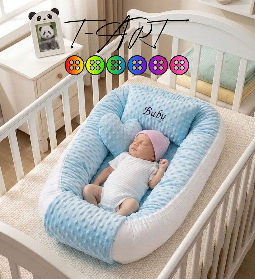 El nido de bebé viene construido en tela piel de conejo burbuja y tela plana con relleno de algodón siliconado, posee cierre de velcro para la extracción del algodón para cuando sea necesario lavarla. Puedes elegir diferentes tonos de color según disponibilidad, es importante que nos contactes antes de ofertar para ver los colores disponibles. Si deseas un diseño personalizado por favor envíanos tu diseño por cualquiera de nuestros canales de comunicación, como nuestro chat o correo electrónico store@t-art.com.co.