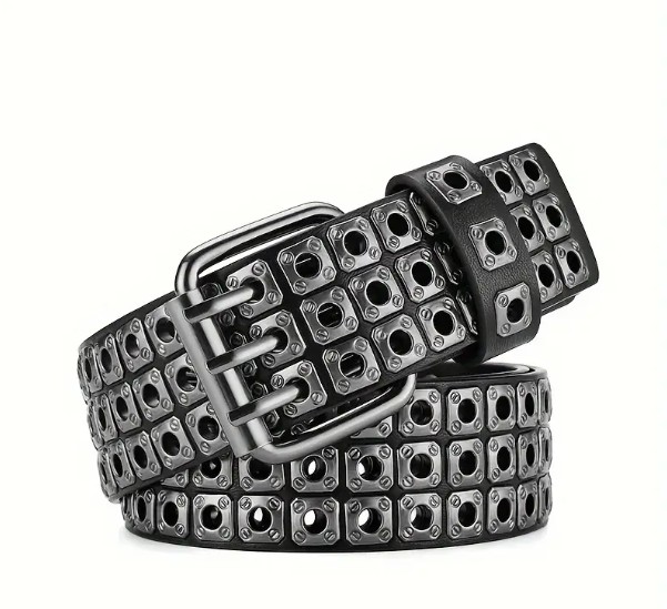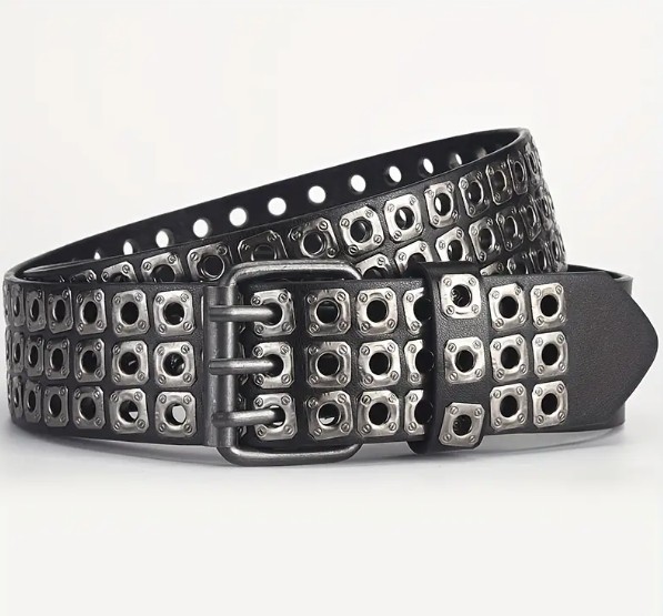 Disfruta de una correa de taches con ojales para acompañar tus mejores prendas de vestir.